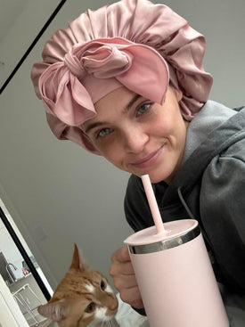 "I love my SilkX turban! It’s so soft and comfortable to wear at night. My hair stays smooth, frizz-free, and moisturized. Plus, the bow design makes it stylish enough to wear around the house. Definitely worth the purchase!